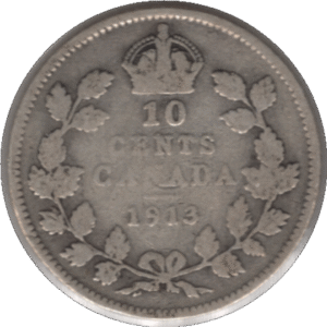 Discover the 1913 Canadian 10 Cents coin, a captivating piece of history featuring the distinguished portrait of King George V on the obverse. This silver coin, with a fineness of .925, showcases exquisite artistry with its reverse design incorporating a crown and maple boughs, symbolizing Canada’s national identity. Although circulated and uncertified, its appeal makes it a valuable addition for collectors and investors alike. Enhance your collection with this timeless memento from Canada’s numismatic heritage.