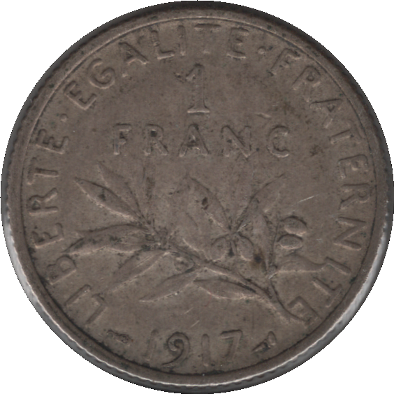 1917 France 1 Franc Silver Coin (Franc 2014# 217, Gad 1789# 467, KM# 844, Schn# 187)