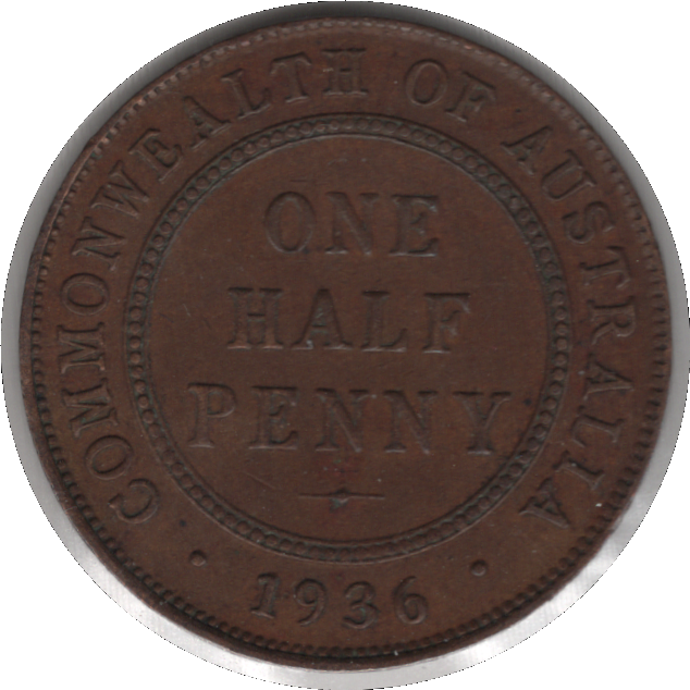 1936 Australia Half Penny Coin (KM# 22, Schn# 13)