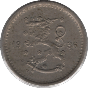 This 1936 Finland 50 Pennia coin, crafted from durable copper-nickel, features a striking obverse design of the Finnish coat of arms with a lion holding a sword, making it a captivating addition for collectors. With a diameter of 18.5mm and detailed reverse showcasing the denomination flanked by grain sprigs, this coin (KM# 26, Schön# 21) is a valuable piece of history and an excellent investment opportunity.