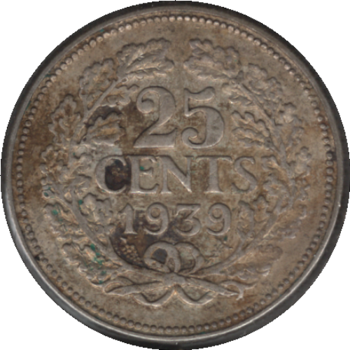 1939 Netherlands 25 Cents Silver Coin (KM# 164, Schn# 44)