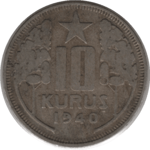 This 1940 Turkey 10 Kuruş coin, composed of 75% copper and 25% nickel, showcases a striking obverse featuring a star within a crescent and a reverse adorned with oak leaves and stylized acorns. With a diameter of 25.5mm and references KM# 863 and Schön# 369, this piece is a must-have for collectors and investors looking to enhance their numismatic portfolios.