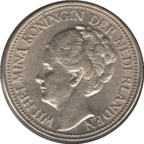 - Obverse: Head of Queen Wilhelmina facing left, hair raised. Lettering around outside.