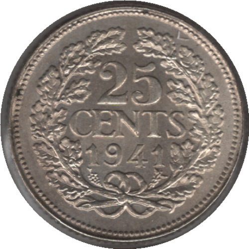 1941 Netherlands 25 Cents Silver Coin (KM# 164, Schn# 44)