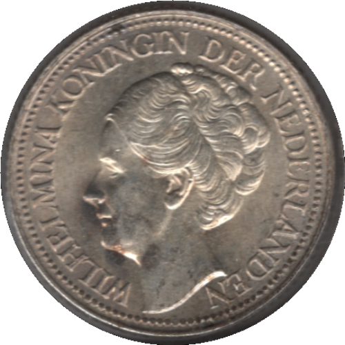 • Obverse: Head of Queen Wilhelmina facing left, hair raised. Lettering around outside.