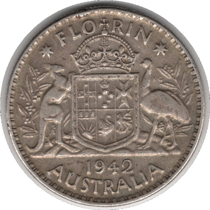 The 1942 Australia 1 Florin coin, crafted from .925 silver and measuring 28.5mm in diameter, features a striking portrait of King George VI on the obverse. Its reverse showcases the intricate coat of arms of the Commonwealth of Australia, making it a must-have for collectors and investors seeking historical significance and aesthetic appeal.