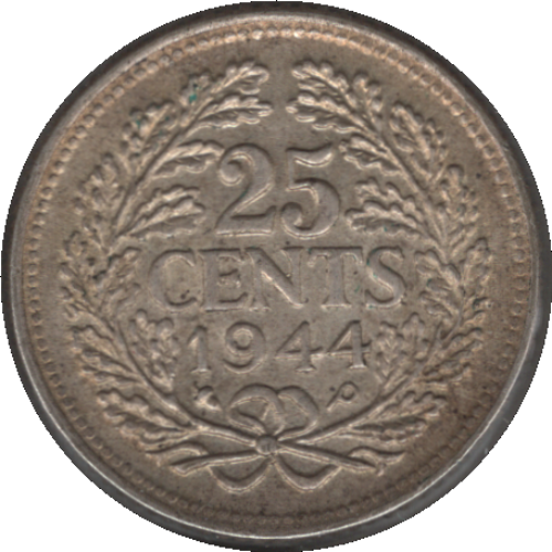 1944p Netherlands 25 Cents Silver Coin (KM# 164, Schn# 44)