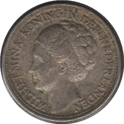 • Obverse: Head of Queen Wilhelmina facing left, hair raised. Lettering around outside.