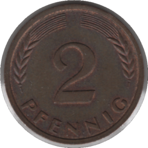 1962J German Federal Republic 2 Pfennigs Coin (KM# 106, J# 381, Schn# 104)