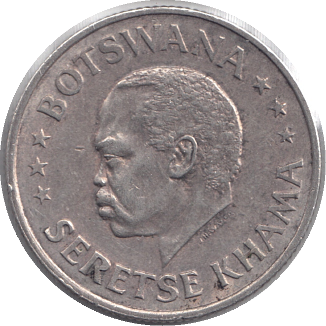 • Obverse: Portrait of Sir Seretse Khama,the 1st. President of the Republic of Botswana (1966-80).