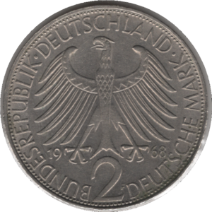 This 1968 2 Deutsche Mark coin from the Federal Republic of Germany features a striking eagle emblem on the obverse, while the reverse pays tribute to physicist Max Planck, the father of quantum theory. Crafted from a durable copper-nickel composition and measuring 26.75mm in diameter, this coin is a valuable addition for collectors and investors alike, representing a noteworthy piece of scientific and national heritage.