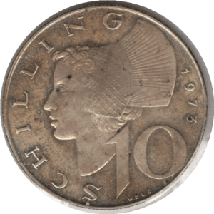 1973 Austria 10 Schilling Silver Coin, From Proof Set (KM# 2882, Schn# 79)