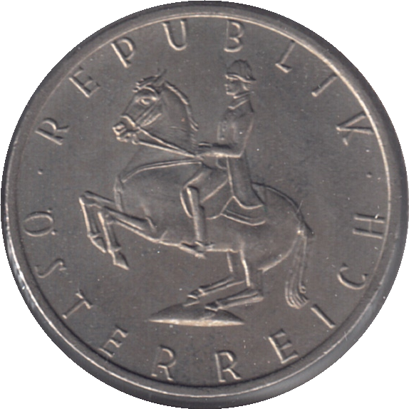 The 1983 Austria 5 Schilling Coin features an exquisite design of a Lipizzaner stallion with its rider on the obverse, symbolizing the country’s rich equestrian heritage. Crafted from 75% copper and 25% nickel, this collectible coin also showcases the Austrian escutcheon and laurel branches on the reverse, making it a valuable addition for both collectors and investors.