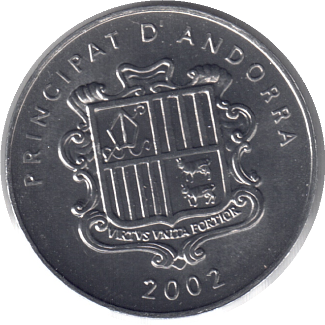 - Obverse: Coat of arms of Andorra with the motto “Virtus Unita Fortior”