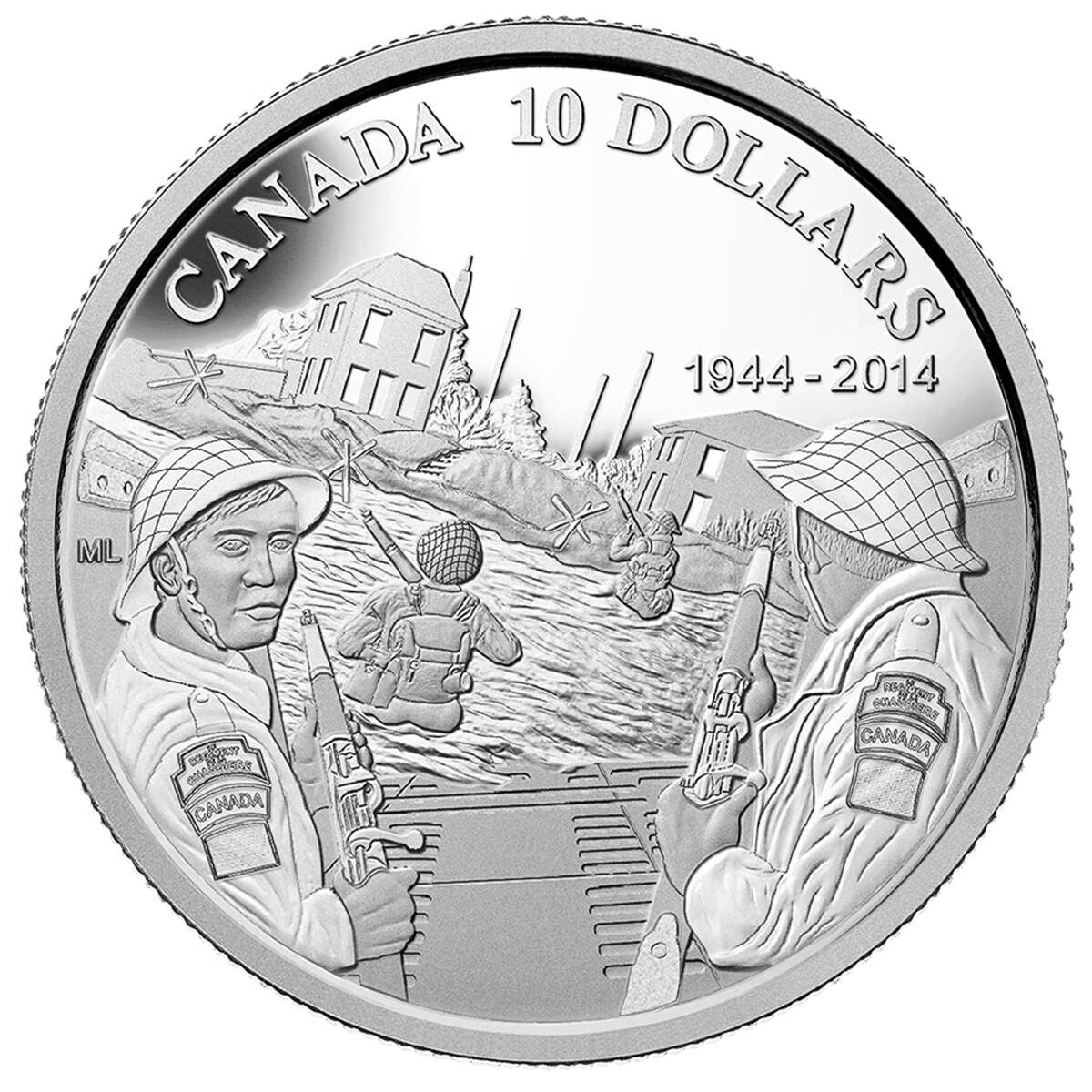 Celebrate the 70th Anniversary of D-Day with this stunning 2014 $10 fine silver coin. Designed by renowned artist Maskull Lasserre, this piece captures the bravery of Canadian soldiers on June 6, 1944. Made with .9999 pure silver and a proof finish, this collectible has a limited mintage of just 8,000 pieces. A perfect addition for collectors and history enthusiasts alike, this coin pays tribute to a pivotal moment in history.
