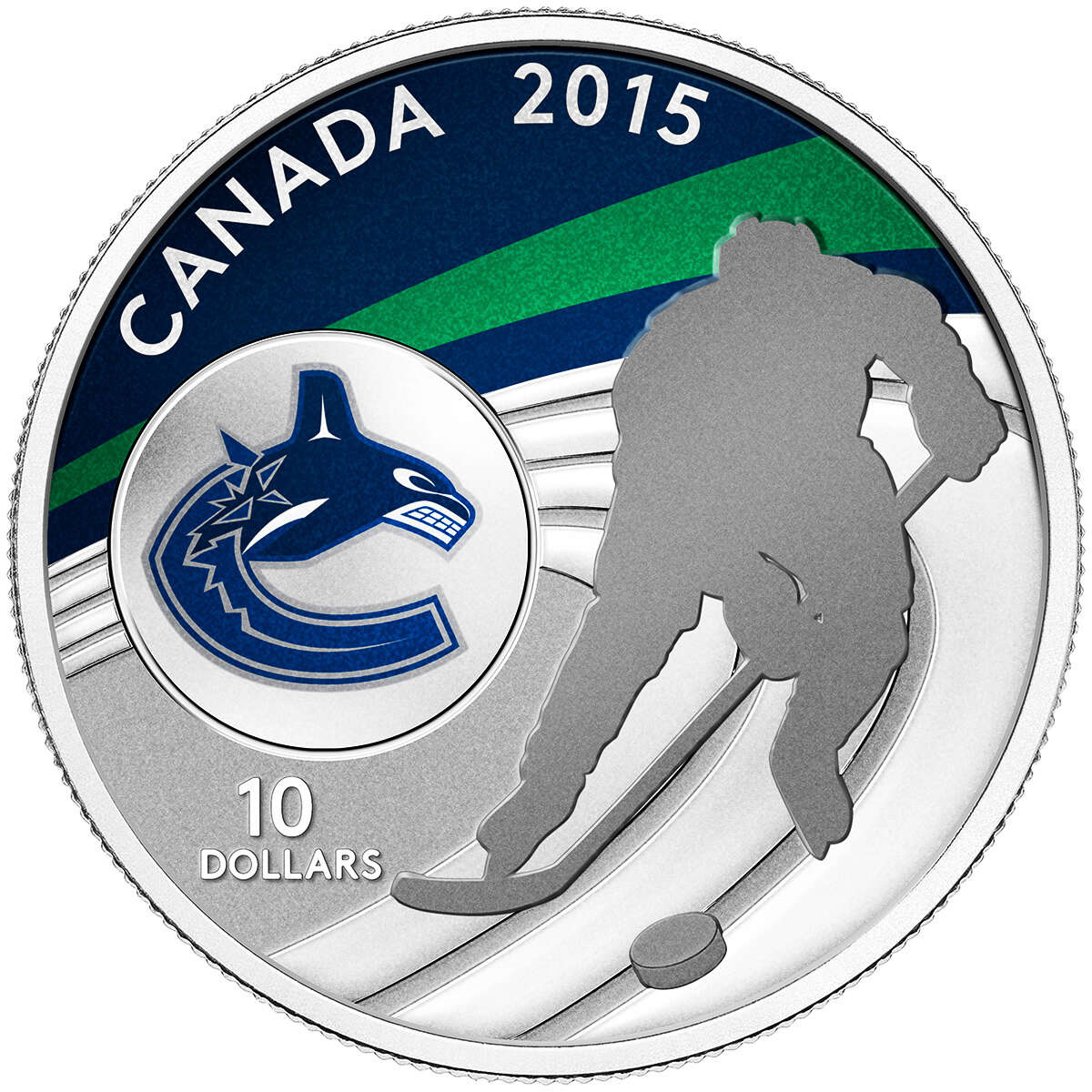 Celebrate the Vancouver Canucks with this 2015 $10 fine silver coin, part of a limited series from the Royal Canadian Mint. This stunning piece features advanced colourization that showcases the team’s spirit and a silhouette of a hockey player in action. With only 5,000 coins minted, it is a rare addition to any collection. Perfect for both hockey fans and silver investors alike, this coin is a must-have treasure.