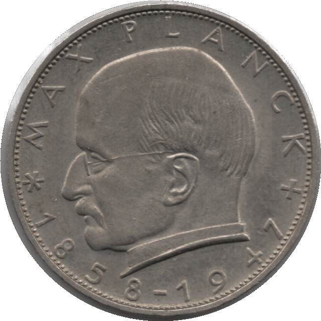 - Reverse: Portrait of Max Planck (1858 – 1947) left, a physicist considered as the father of quantum theory with the inscription gives his name and the dates of his birth and his death around the rim.