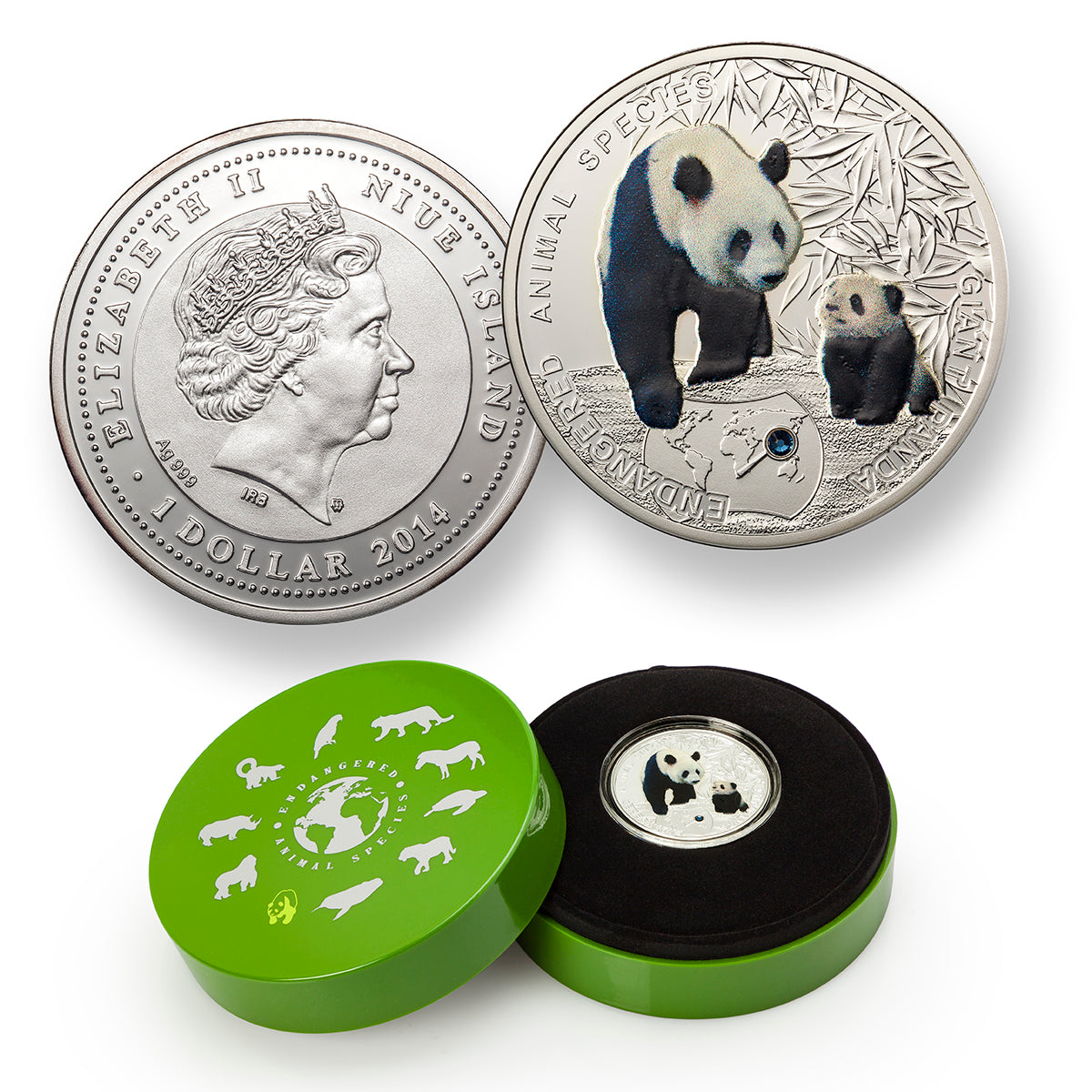 Discover the beauty of the endangered Giant Panda with this stunning silver coin. Limited mintage of only 2,014 pieces worldwide, making it a rare find for collectors. This exquisite design features a crystal element that highlights the panda’s natural habitat. A perfect addition to any wildlife or silver coin collection.