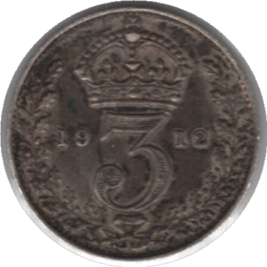 This 1912 United Kingdom 3 Pence coin, featuring the uncrowned portrait of King George V, is a striking addition to any collection, crafted from .925 silver and measuring 16mm in diameter. With its elegant design showcasing the crowned denomination within an oak wreath, this piece is a must-have for investors and enthusiasts alike, referenced as KM# 813 and Numista N# 21182.